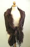 Gorgeous 100% Pure Silk w/Fox Trim Fashion Lady Shawl-20" W x 79" L + Fox Trim Around Throughout,Lightweigh,Soft Touch & Comfortable,Elegant Brown Pure Shanghai Silk and Fox Fur. Super Saving,100% Satisfaction Guaranteed !